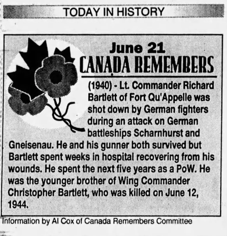 Lt(A) Bartlett was BROTHER of W/C C S Bartlett (RAFVR)(Can), killed in action 1944-06-13 on 434 Squadron Halifax LW 173 WL-K during an operation over Arras, France