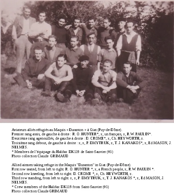 Evaders: F/Lt J M Forman RCAF J/15236 Evader. F/Lt E B Mason RCAF J/7777 Evader. Pilot Officer Charles Heyworth RAF died later of his injuries Evader, Pilot Officer J M Nelmes RCAF R/92464 Evader.