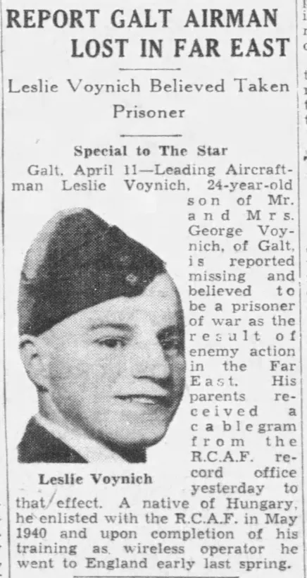 POW on April 1942, but he is also listed on May 31 1943 casualty list as missing in action (still as an LAC) but confirmed POW on July 17 1943