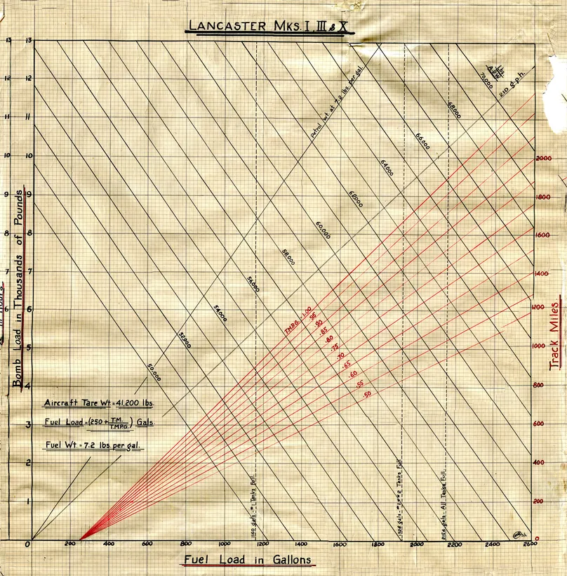 Fuel, Distance and Bomb Load Chart - Drawn by Ross