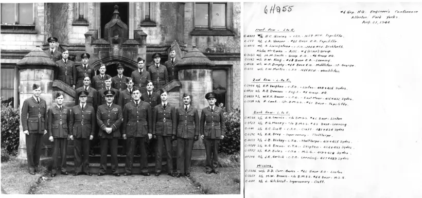 Ross reported for duty at Group 6 HQ in Allerton Hall on July 17, 1944. He was 'back in another Nissan hut again. Met lots of old pals here so I won't be a stranger at all. . . Ready for work under W/C Smith as Vice Group Engineering Officer & also in charge of Eng 1 which is the statistical analysis of all operational failures & engine & airframe troubles, crashes etc. Spent a very quiet day reading . . .I sure won't be overworked by the look of things which somehow doesn't appeal to me much. .. The poor old conversion units are practically forgotten down here. . . . it is much easier than looking after my wing at Wombleton - the only difference being that the stakes are higher & responsibility much greater with 14 operational squadrons and 3 con units to worry about.'
